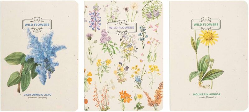 - DESIGN - Includes 3 notebooks with 3 different designs, inspired by the beautiful design of Botanical Wild Flowers, our new collection. The A6 notebooks are different: 1 ruled notebook, 1 dotted notebook, 1 blank notebook