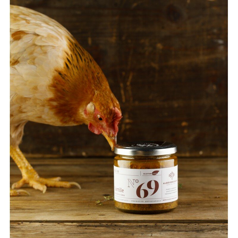 Ingredients: guinea fowl (26%), chicken 26%, turkey 26%, celeriac, carrot, celery, shallot, red wine , black olives, olive oil, thyme, salt and black pepper